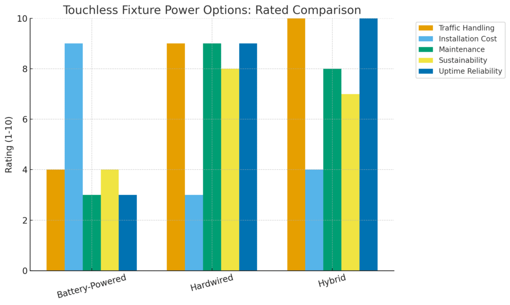 Battery, hardwired, and hybrid are not just convenience options. They affect cost of ownership, long-term maintenance, sustainability objectives, and even bathroom reliability. Let’s go through each one, analyze their pros and cons, and summarize where each comes out on top.